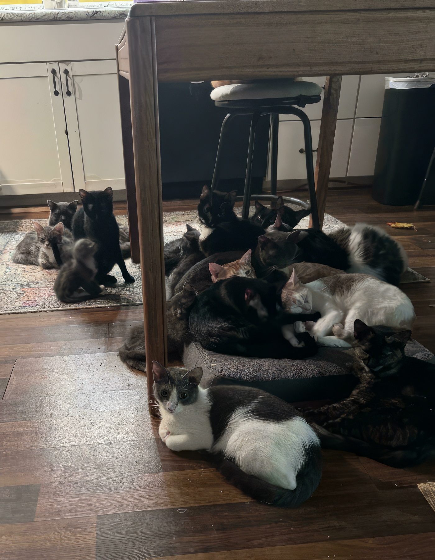 Le conseil réuni sous la table de la cuisine