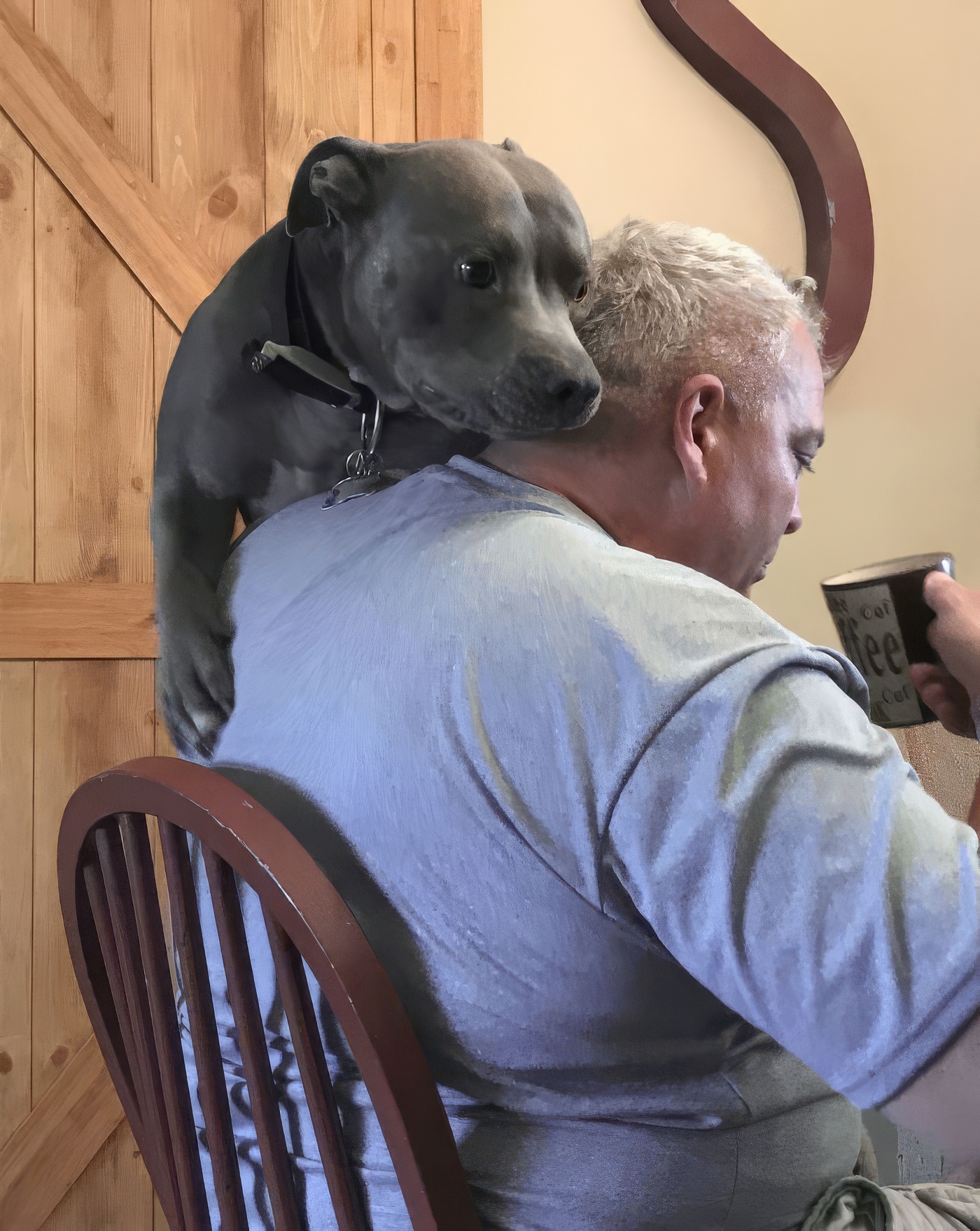 il pense qu’il peut grimper sur mon dos comme mon chat !