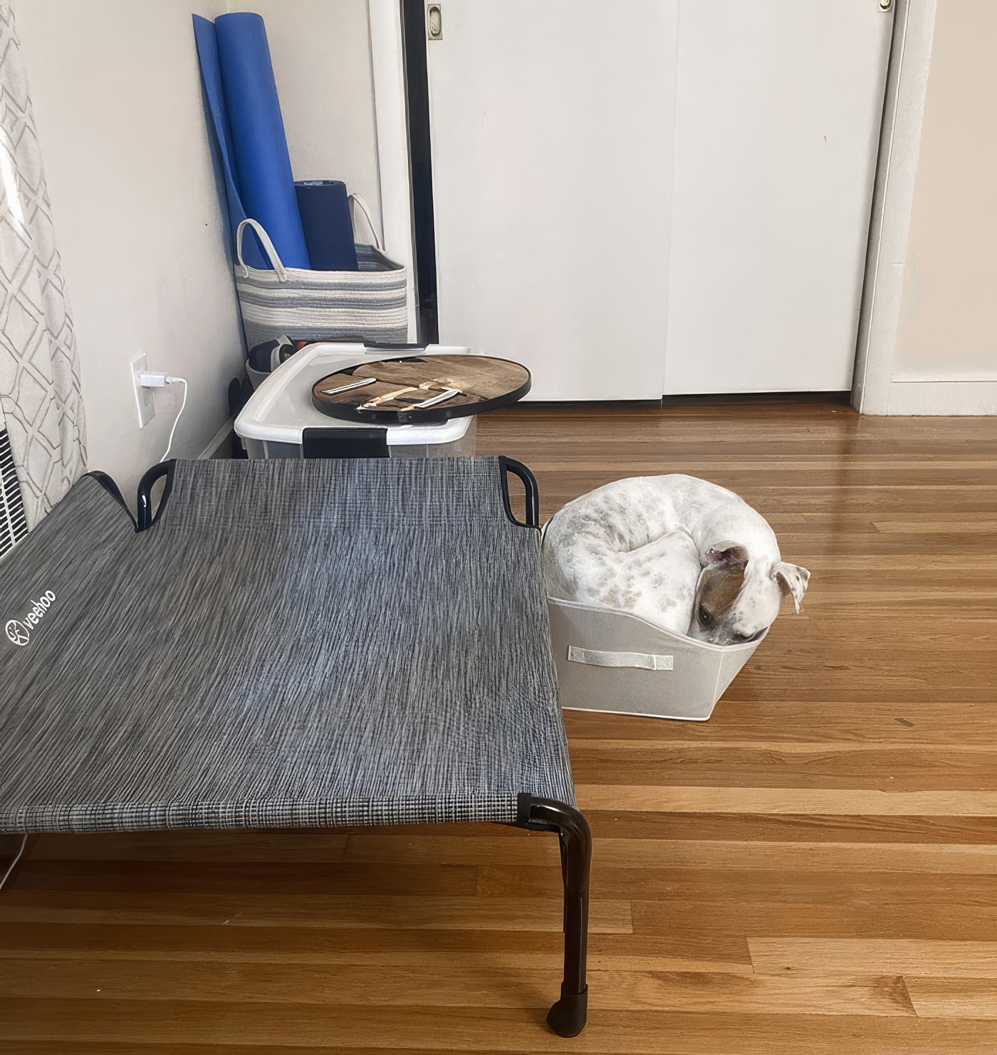 le chien du voisin se détend comme un vrai chat