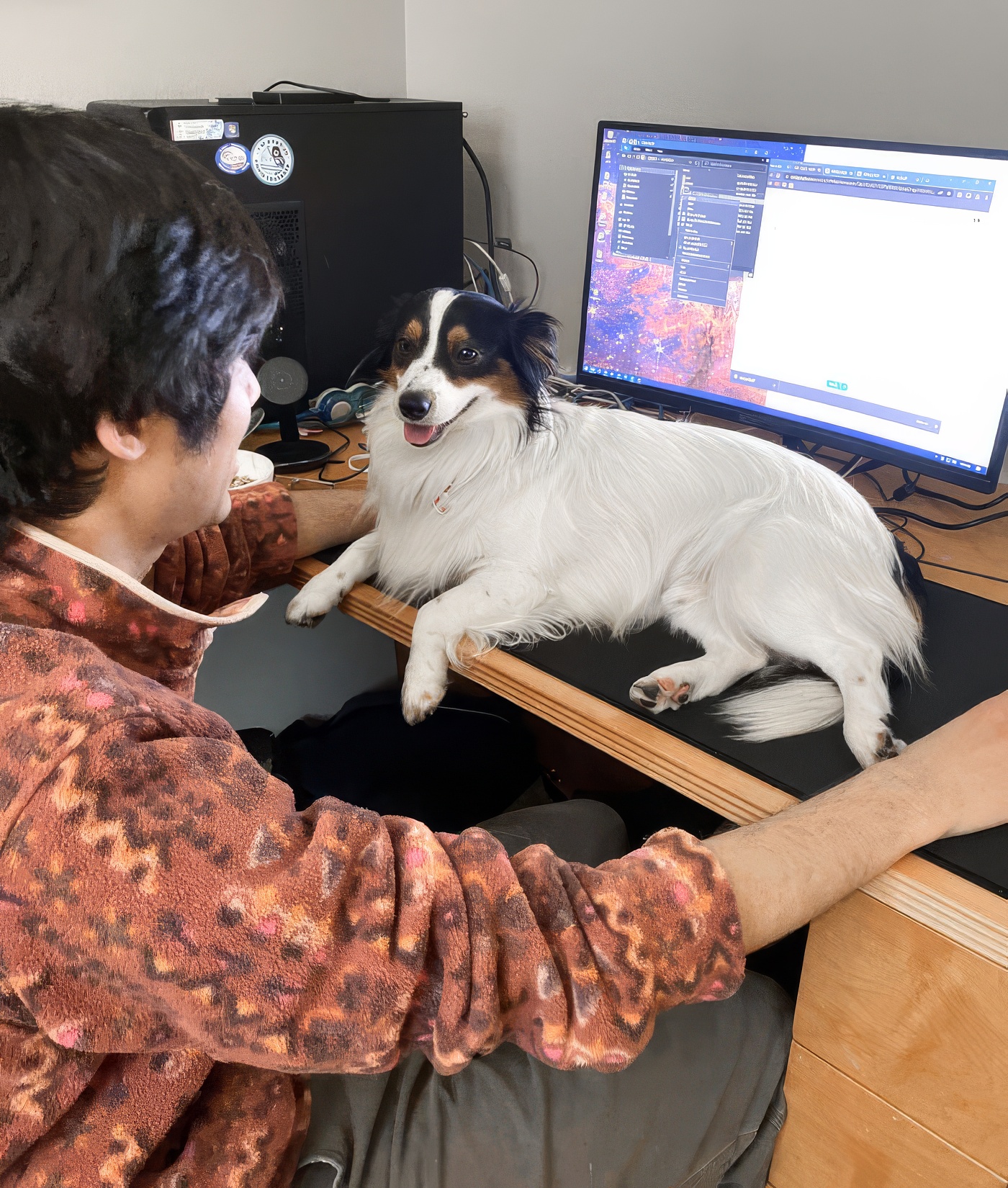 je lui explique qu’il n’est pas un chat, il est trop grand pour être sur mon bureau