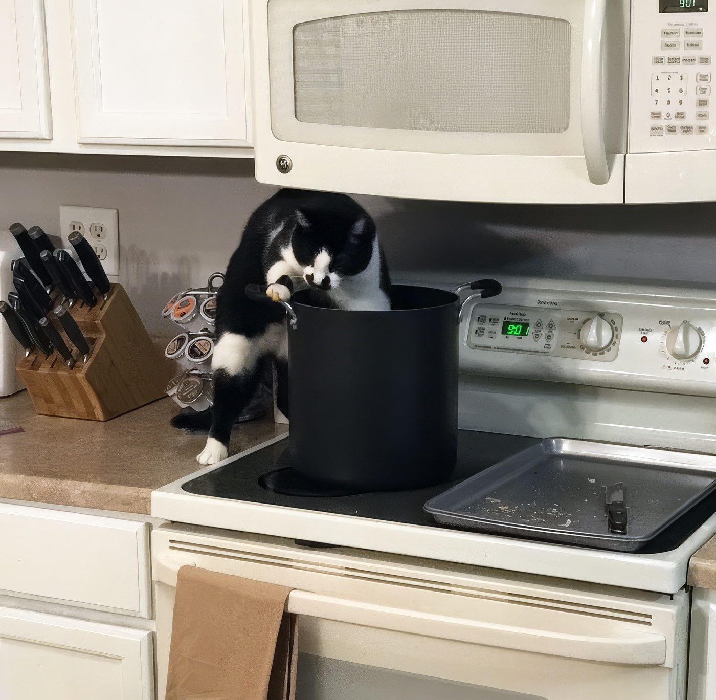 J’ai laissé la casserole de spaghettis sans surveillance quelques minutes et je l’ai pris en flagrant délit