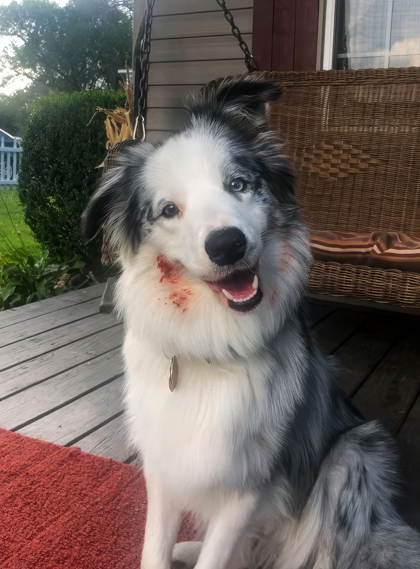 Mon chien m’a presque causé une crise cardiaque aujourd’hui. J’ai cru qu’il avait attaqué notre autre chien et qu’il avait du sang partout sur le visage. Puis j’ai vu un pépin et compris qu’il avait dévoré les tomates