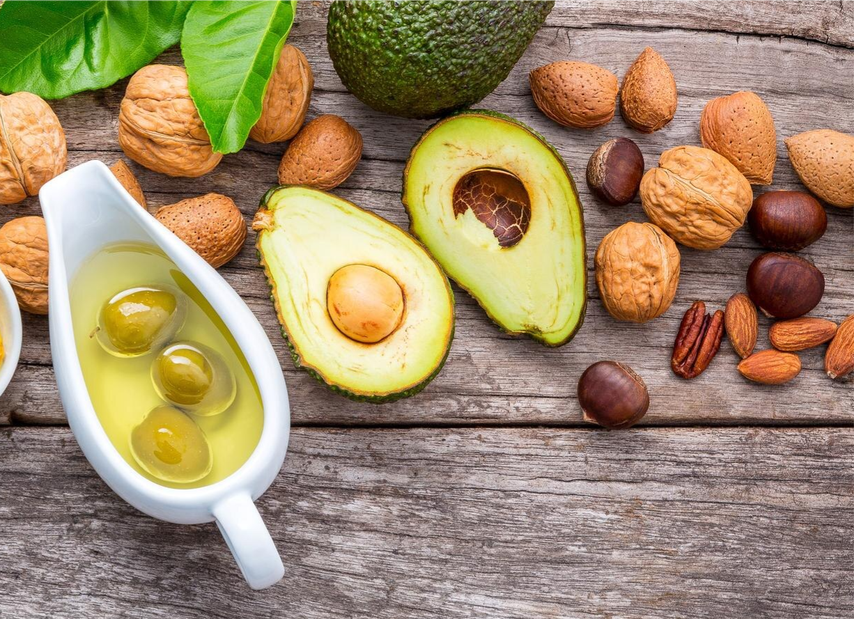 ✔️ Riche en graisses saines : huile d’olive, noix, avocat, graines