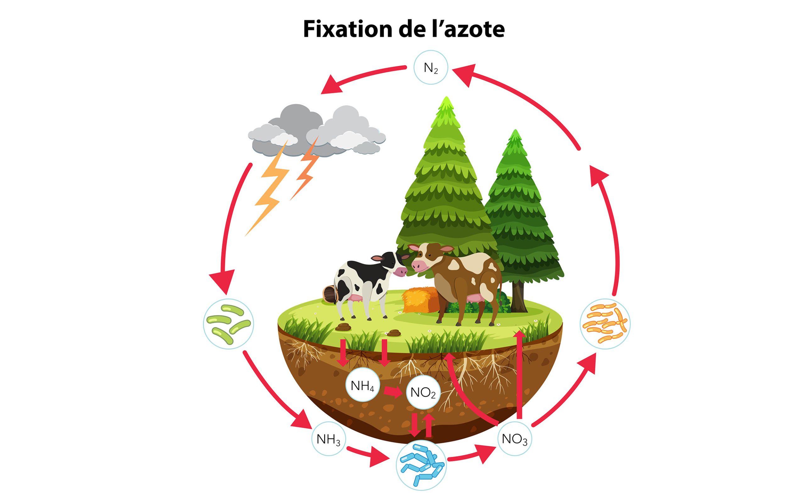 L’azote est un élément fondamental pour la vie, mais sous sa forme gazeuse, il est inutilisable par la plupart des organismes. Seules certaines bactéries sont capables de le capter et de le transformer en ammoniac, une forme assimilable par les plantes.
