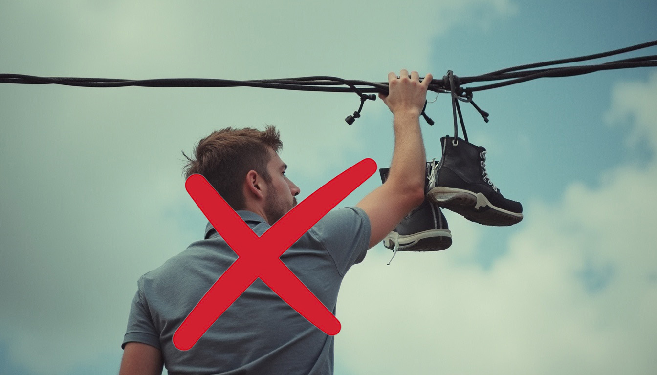 Vous avez sûrement déjà croisé une paire de chaussures accrochée à une ligne électrique en vous promenant. Ce phénomène, connu sous le nom de « shoefiti », intrigue et suscite de nombreuses spéculations. Est-ce un simple jeu d’adolescents ou un véritable code secret ? La réponse est plus complexe qu’elle n’y paraît, car cette pratique existe dans de nombreux pays et ses significations varient selon les contextes. Plongeons dans les différentes explications derrière ce curieux phénomène.