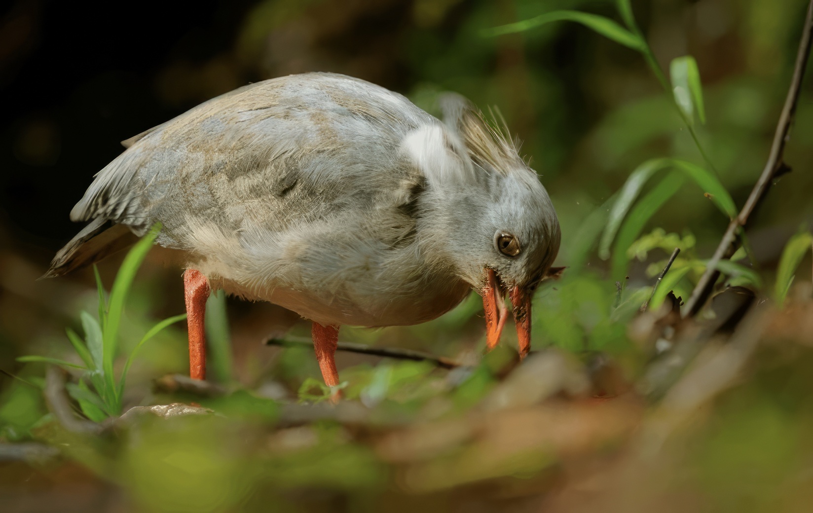 Le Kagu n’est pas un simple promeneur des bois. Il chasse en fouillant la litière forestière, utilisant son bec pour retourner les feuilles et déloger ses proies favorites : insectes, escargots, lézards. Son comportement est entièrement adapté à la vie terrestre, et il passe la majorité de ses journées à explorer le sol, ce qui le rend d’autant plus vulnérable aux menaces au niveau du sol. Mais cette façon de vivre a aussi façonné une particularité… que vous découvrirez bientôt.