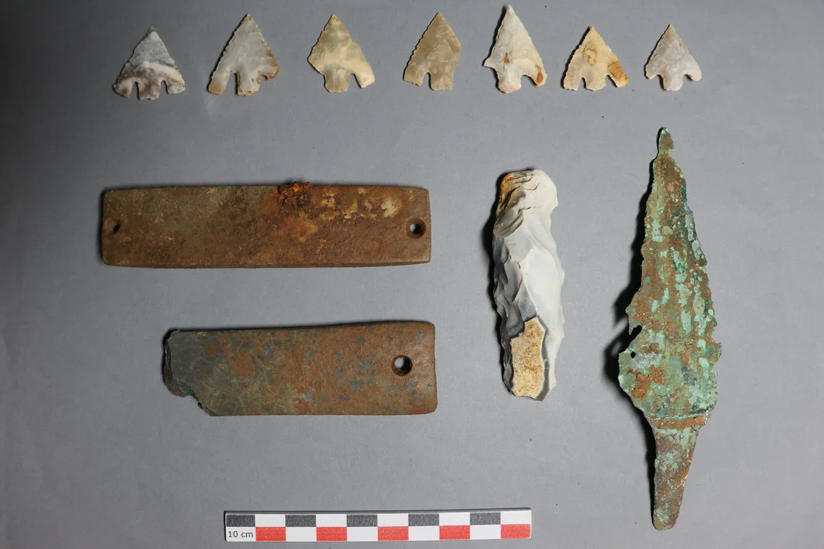 Outre le monument, les fouilles ont révélé plusieurs puits datant de l’Âge du bronze, ainsi qu’une nécropole entre -1500 et -1300 avant J.-C.. Des fibules en cuivre et un collier d’ambre y ont été retrouvés. Malheureusement, l’acidité du sol a empêché la conservation des squelettes, mais les objets funéraires témoignent de la richesse de ce lieu de sépulture.