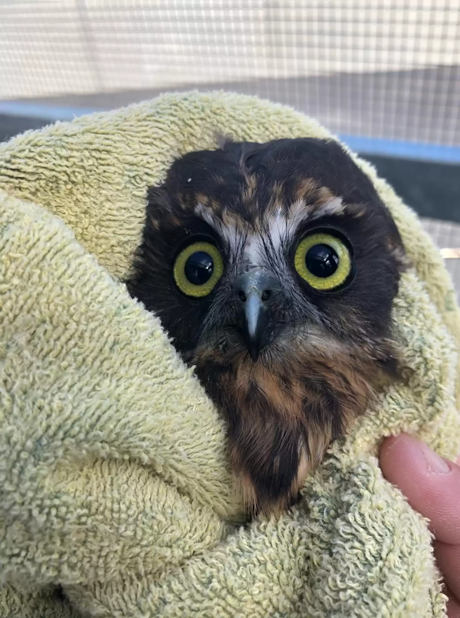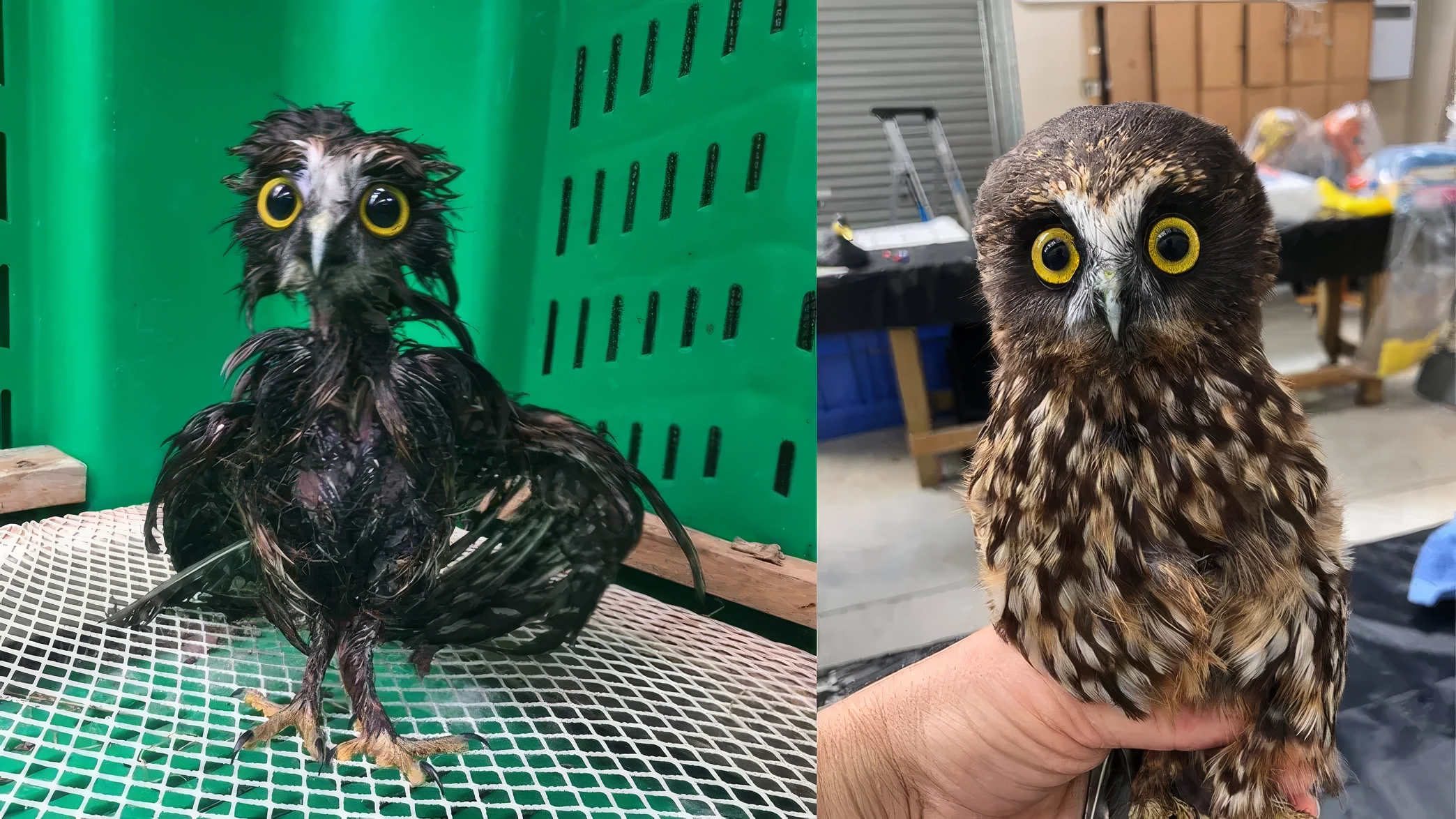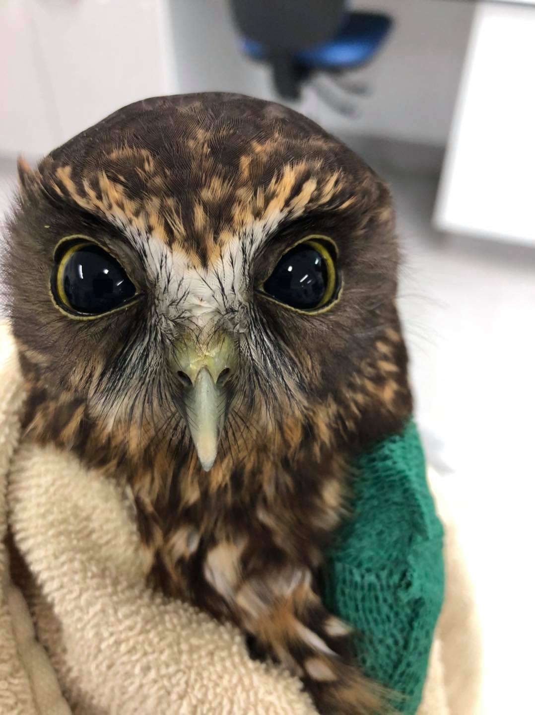 Après le bain, le hibou a été séché avec délicatesse. Nijman l’a d’abord tamponné avec une serviette, puis placé sous un souffleur d’air chaud. « Il s’est plutôt bien séché ! », a-t-elle plaisanté. Peu à peu, son apparence duveteuse est revenue, et son regard s’est radouci. Une fois sec, il a été remis dans la volière de la clinique, aux côtés d’autres moreporks en réhabilitation.