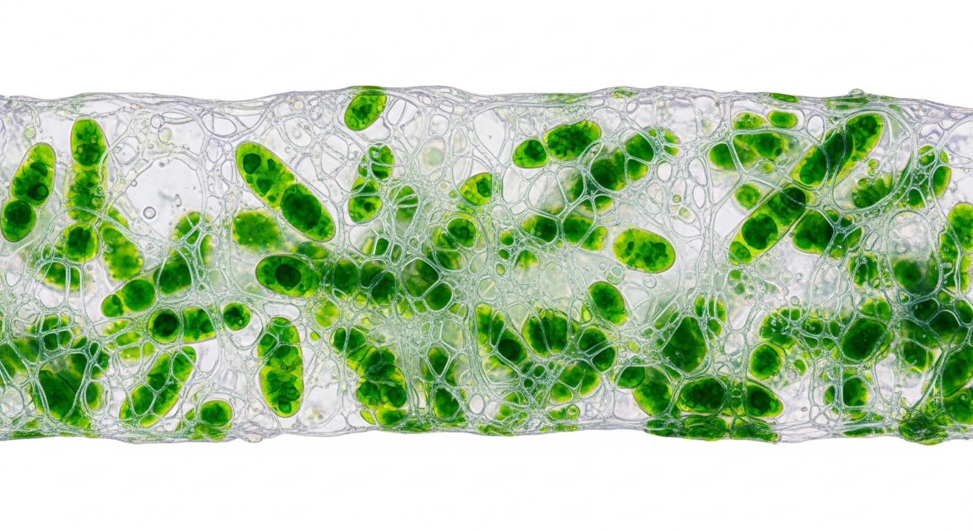 Alors, quel est le secret de cette matière magique ? À l’intérieur d’un gel spécial, un peu comme une éponge remplie d’eau, les chercheurs ont placé des organismes microscopiques appelés cyanobactéries. Vous les connaissez peut-être sous le nom d’algues bleu-vert. Ces algues sont de véritables championnes de la nature.
