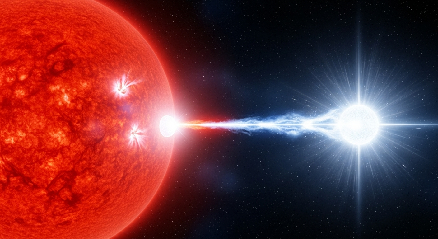 Alors, qu’est-ce que c’est exactement, une nova ? Imaginez un couple d’étoiles qui dansent l’une autour de l’autre. L’une est une étoile normale, et l’autre est ce qu’on appelle une « naine blanche », c’est-à-dire le cœur restant d’une vieille étoile morte. C’est un peu comme une braise très dense.