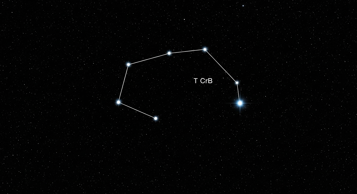 Alors que ces deux novas commencent doucement à s’éteindre, les astronomes ont déjà les yeux rivés sur un autre événement imminent. Il s’agit d’une étoile surnommée « l’Étoile Flamboyante » (ou T Coronae Borealis). C’est une nova « récurrente », c’est-à-dire qu’elle explose à intervalles réguliers.