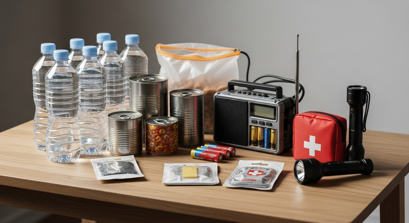 - Préparez vos provisions : Faites quelques courses pour avoir de l’eau, des conserves, des piles et une lampe de poche, au cas où.