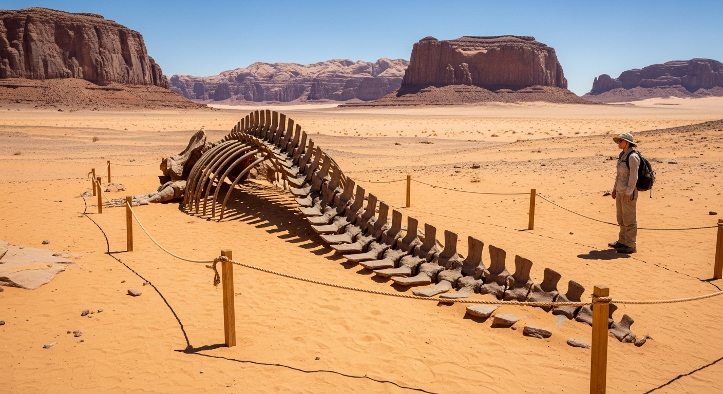 Imaginez un peu : au beau milieu du désert du Sahara, en Égypte, un endroit où le sable s’étend à perte de vue. Mais ce n’est pas un désert comme les autres. Ici, le sol est parsemé de squelettes de baleines très anciennes. C’est un véritable cimetière de géants des mers, connu sous le nom de la Vallée des Baleines. Et ces fossiles nous racontent une histoire absolument fascinante, celle d’une époque où les baleines… n’étaient pas tout à fait comme celles que nous connaissons aujourd’hui.
