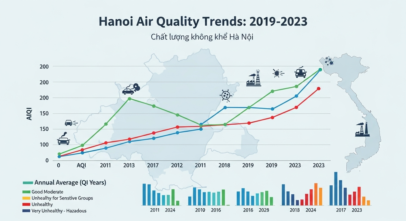 - Des indices AQI souvent entre 115-165 (« mauvais » à « très mauvais »)