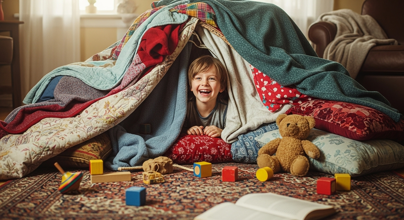 Laissez un enfant face à ce que nous appelons « l’ennui », et vous verrez un petit miracle s’opérer. Quand il n’a rien de tout fait pour s’occuper, son esprit se met en marche. Une simple couverture se transforme en grotte secrète, une rangée de chaises devient un train express, un bout de bois se métamorphose en baguette magique. C’est ça, la magie du jeu libre.