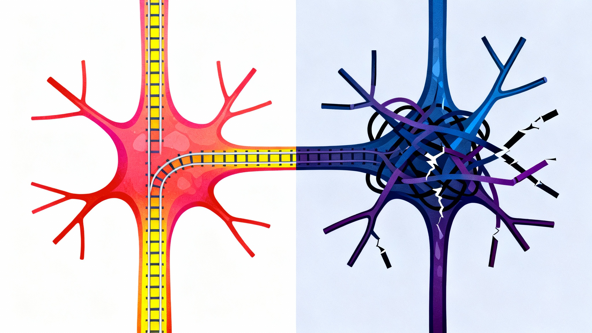 Pour bien comprendre, il faut imaginer nos neurones comme un immense réseau de voies ferrées. La protéine tau, c’est un peu comme les traverses qui maintiennent les rails bien en place. Son rôle est crucial : elle stabilise la structure interne des neurones pour que tout puisse circuler correctement. C’est le chef d’orchestre du transport interne.