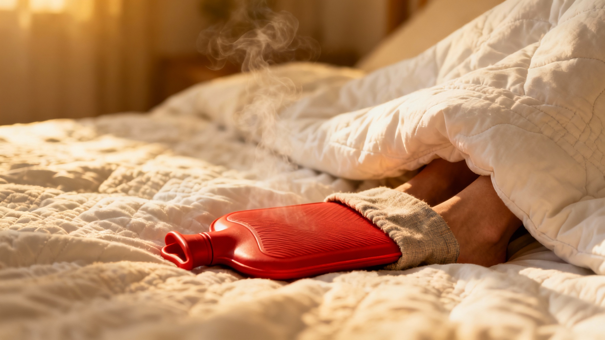 On peut, par exemple, profiter de leur chaleur réconfortante durant la soirée. Une autre astuce très efficace et peu coûteuse consiste à utiliser une bouillotte chaude, placée au fond du lit, pour y maintenir une température agréable sans enfermer l’humidité de manière excessive.
