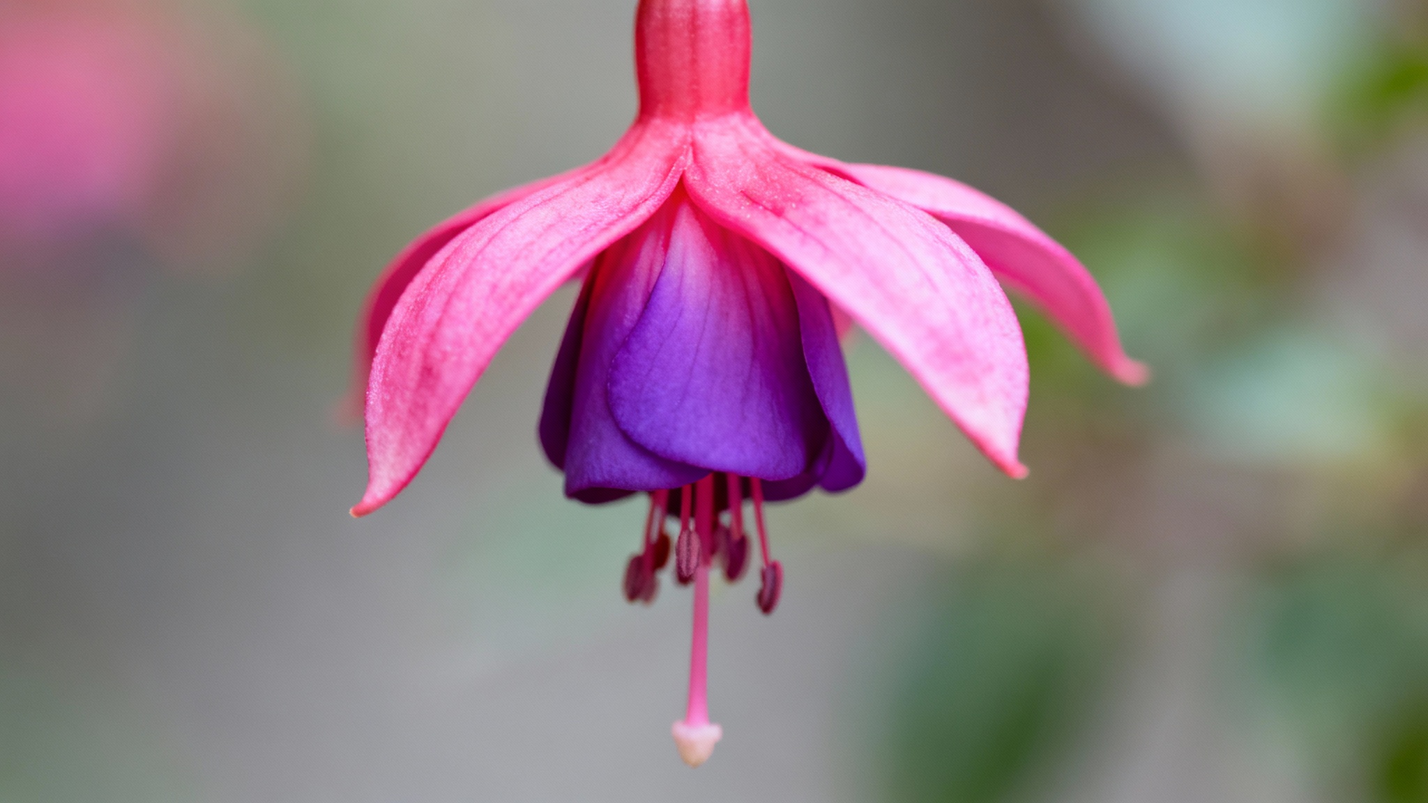 Plus délicat mais tout aussi efficace, le Brin d’oreille (Fuchsia hybrida) est souvent considéré comme un aimant à colibris. Ses fleurs en forme de cloches pendantes, souvent bicolores (rose et violet ou rouge vif), respirent l’élégance et la finesse. Leur structure tubulaire et la quantité généreuse de nectar qu’elles contiennent font de cette fleur une cible privilégiée.