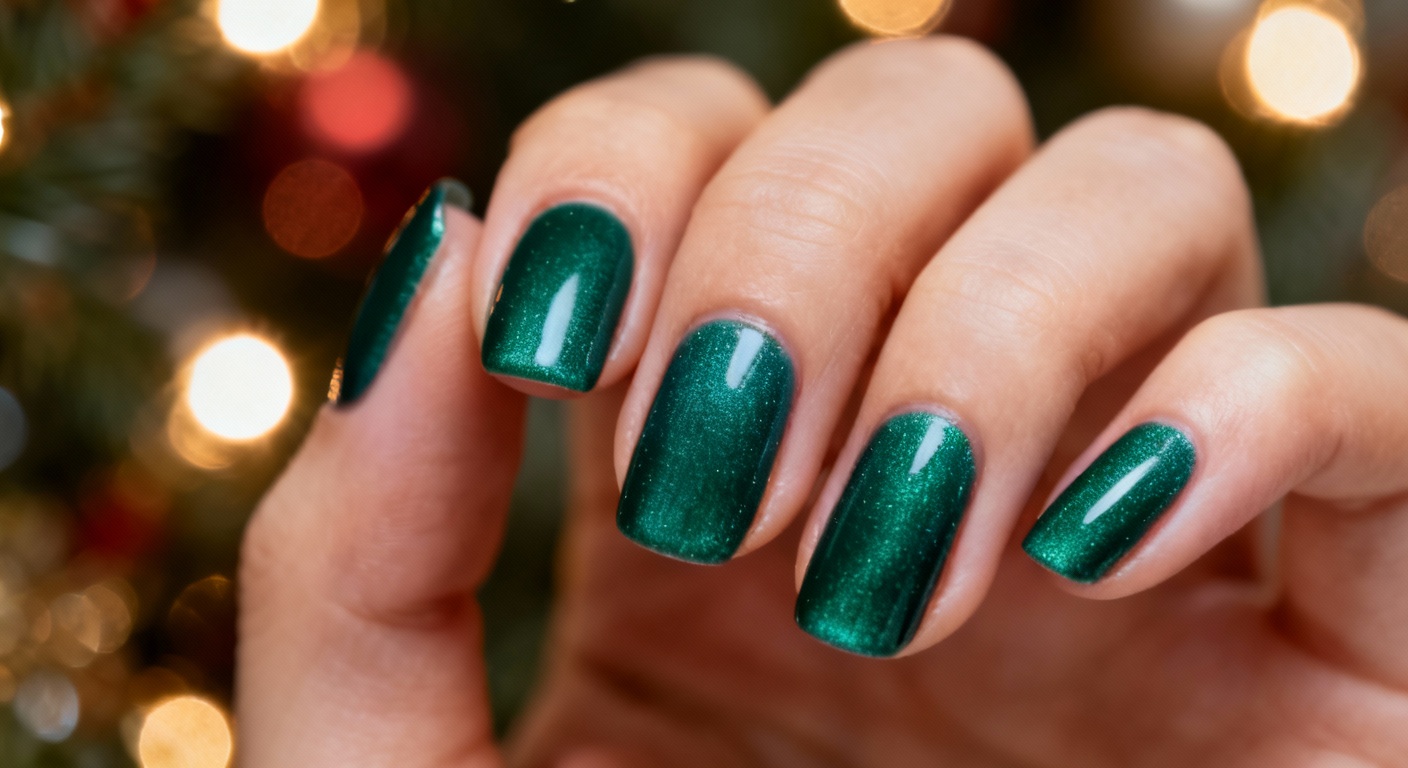Enfin, le vert s’invite sur nos ongles pour apporter sophistication et originalité. Pensez au vert sapin classique, au vert velours, ou même au vert-bleu canard, comme le Yuletide Sweetings d’OPI (qui a aussi cet effet velouté). L’astuce ici, c’est de garder la couleur de base sobre pour les dîners de famille de Noël, mais de l’accessoiriser de paillettes pour le réveillon du Nouvel An. Ça permet d’avoir un bon combo polyvalent, pas vrai ? N’oublions pas non plus le rouge-bordeaux intense aux reflets veloutés, un peu comme un verre de vin qui scintille, avec le Complimentary Wine d’OPI, et le rouge profond à l’effet velours du Red Velvet Vixen d’OPI.