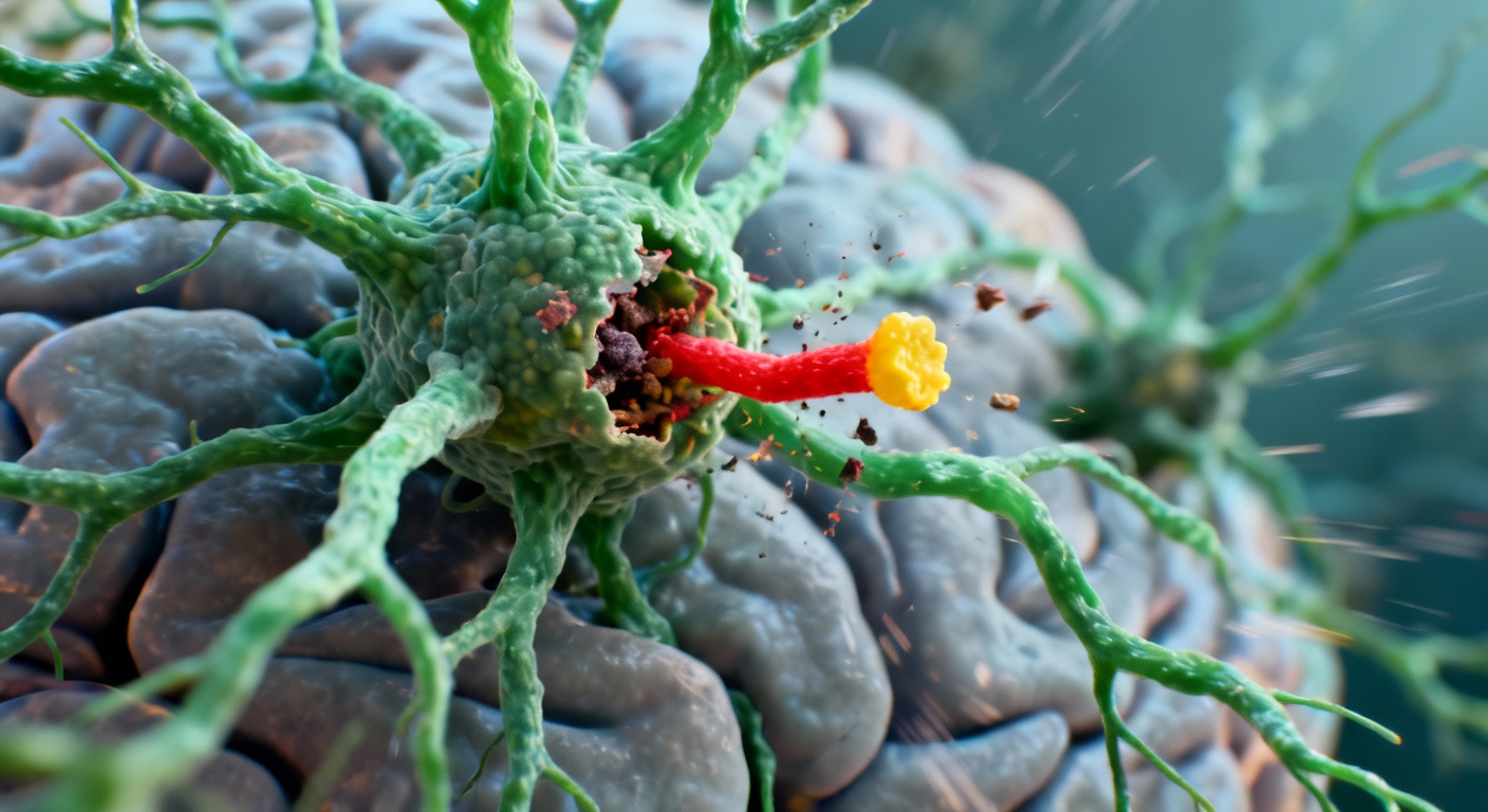 Le cœur du phénomène neurodégénératif ne réside pas uniquement dans la présence de ces plaques toxiques, mais plutôt dans la manière dont le cerveau y réagit. Deux types de cellules de soutien jouent ici un rôle primordial : les astrocytes et les microglies. Normalement, ces cellules sont des nettoyeurs efficaces, elles procèdent à l’« élagage synaptique » pour nettoyer et optimiser les circuits neuronaux pendant le développement. Mais chez les chats atteints de démence, ce mécanisme fondamental bascule et devient complètement pathologique.