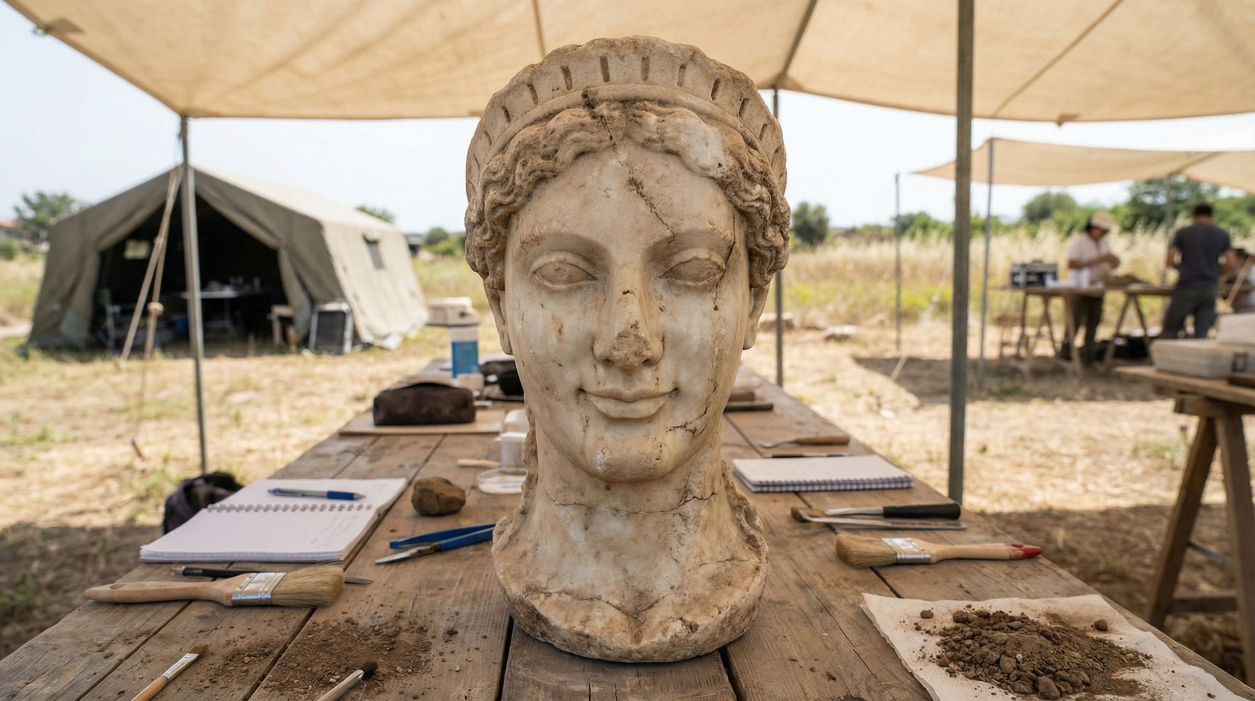C’est le genre de moment dont rêvent probablement tous les passionnés d’histoire, vous savez ? Imaginez un peu la scène. Sur un site archéologique situé dans ce qui était autrefois la puissante cité étrusque de Vulci, au nord-ouest de Rome, une tête a commencé à émerger de la terre. Pas n’importe laquelle, bien sûr. Il s’agit du visage désincarné d’une jeune femme, dont les yeux vides fixent le néant, traversant des millénaires d’histoire silencieuse. Son visage en marbre n’avait pas vu la lumière du jour depuis environ 2 500 ans. C’est assez vertigineux quand on y pense.
