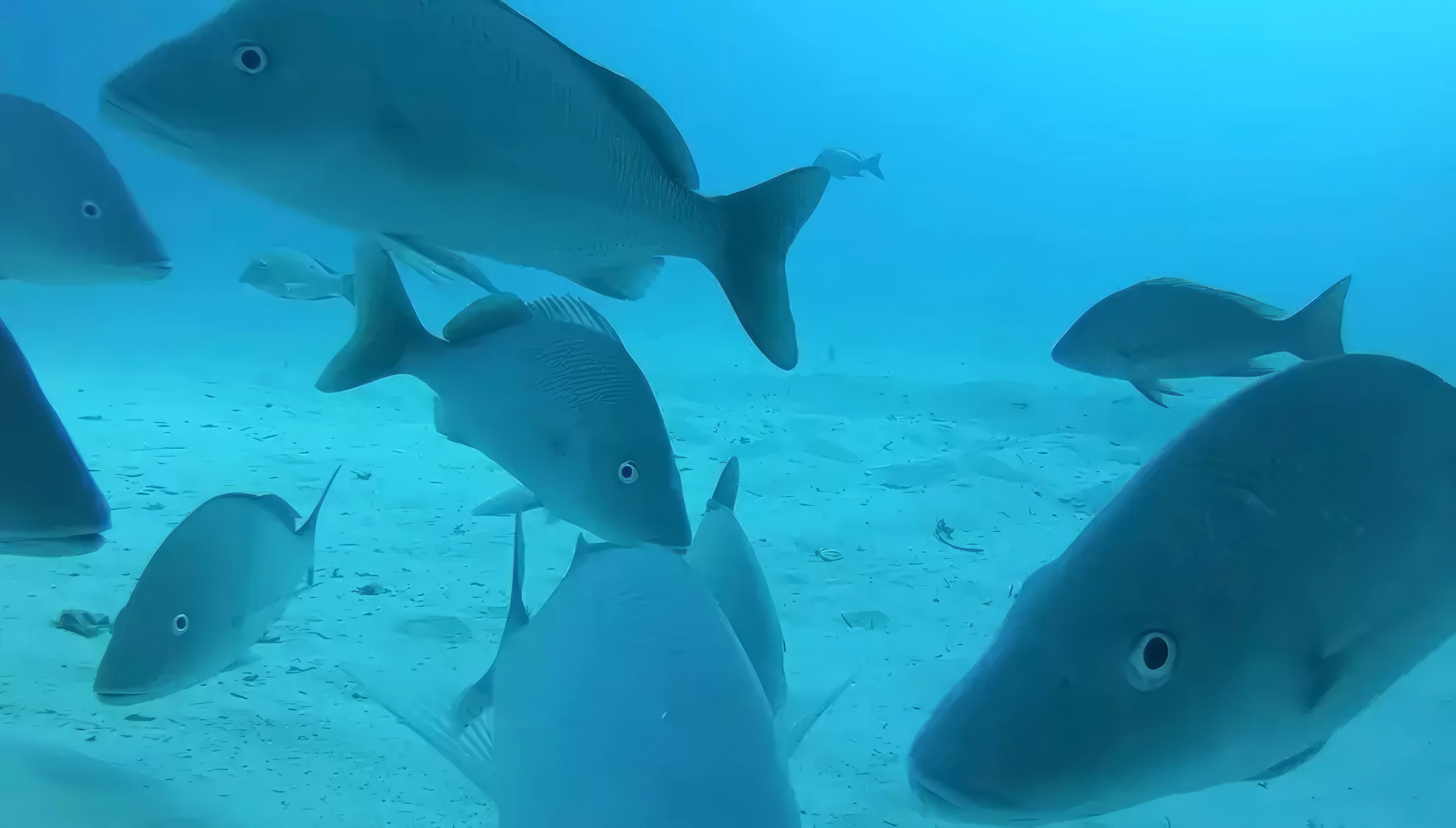 Odysseas a eu la bonne idée de faire descendre sa caméra à deux moments clés : en plein jour et à l’heure fatidique de la nuit, histoire de voir si l’ambiance changeait une fois le soleil couché. Au début de la vidéo, alors que la caméra commence sa descente vers les profondeurs, elle croise un banc de poissons inquisiteurs. Jusqu’ici, tout va bien. La caméra se pose sur le fond marin et nous offre une scène plutôt apaisante, avec diverses créatures aquatiques qui vaquent à leurs occupations. C’est relaxant, presque poétique.
