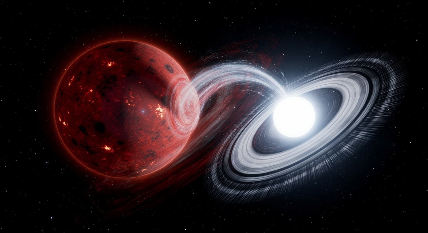 Plus de dix de ces objets ont été découverts à ce jour. Le souci, c’est qu’ils sont si loin et si profondément enfouis dans notre galaxie qu’il est difficile de les identifier. Ce n’est qu’en 2025 que deux d’entre eux ont été formellement identifiés comme des binaires naine blanche–naine M. C’était inattendu, mais il nous manquait encore un modèle solide pour expliquer comment tout cela fonctionne.