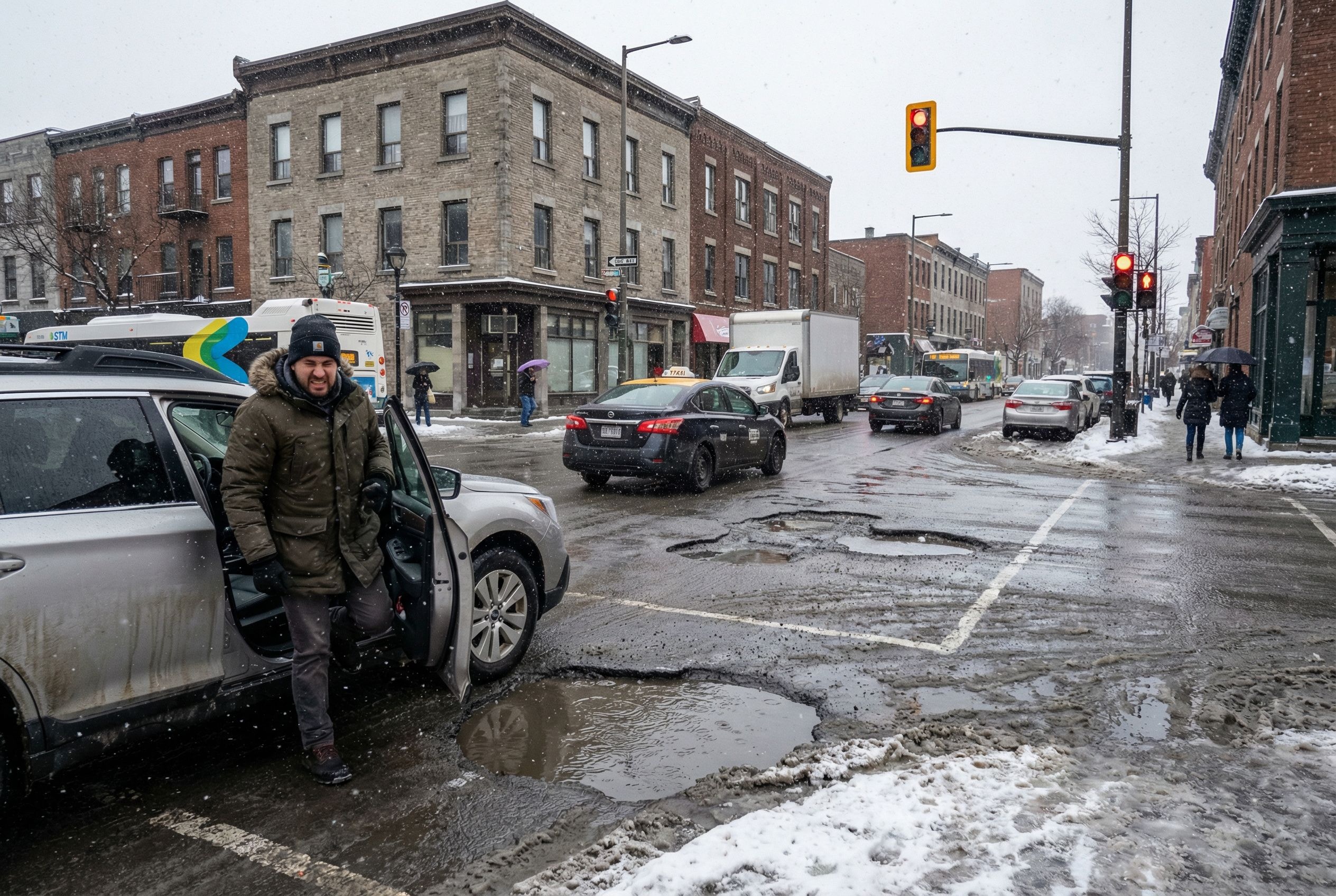 On a même aperçu un conducteur, visiblement à bout de nerfs après avoir heurté l’un de ces trous, sortir de son véhicule à un feu rouge. Il a inspecté ses pneus en laissant échapper un juron bien senti. La frustration est palpable. Debora Arsène, une passante rencontrée dans le stationnement d’un Tim Hortons voisin, résume bien la pensée générale : « On évite ce coin-là quand on peut, ça fait un moment que la route est dans cet état ».
