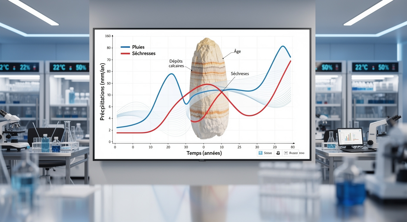 Ces formations géologiques agissent comme de véritables « annuaires des précipitations ». Les scientifiques ont analysé la stalagmite pour reconstituer l’histoire climatique de la région. Ce travail s’appuie sur l’excellence des groupes de recherche « Environmental Proxies » et « Climotope » d’Oxford, pionniers dans la reconstruction quantitative des environnements passés.