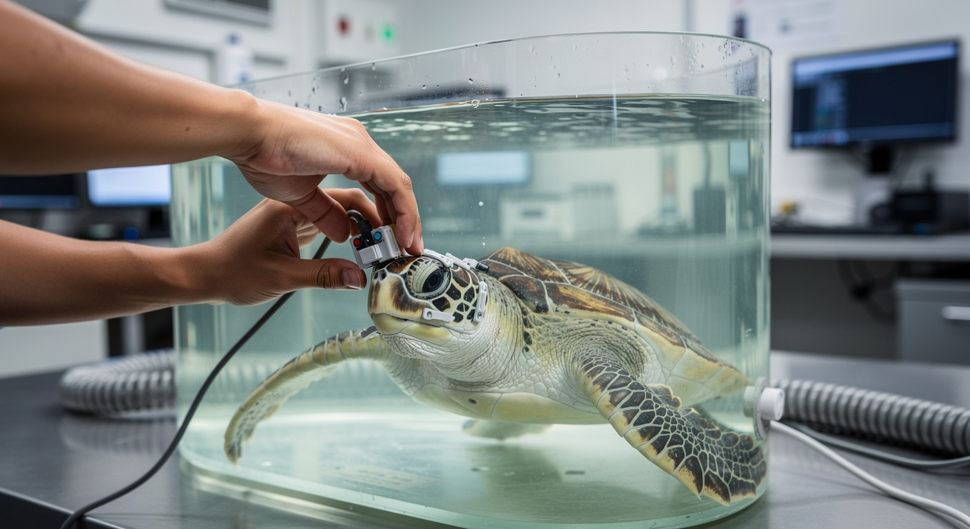 Pour comprendre ce que ces reptiles marins entendent, l’équipe de recherche a dû innover afin d’éviter tout stress aux animaux. Au lieu de dresser les tortues à réagir à des sons, les scientifiques ont mesuré l’activité électrique subtile de leur système nerveux pendant qu’elles se reposaient calmement sous l’eau. Cette approche physiologique permet d’obtenir des données objectives sans perturber le comportement naturel de l’animal.