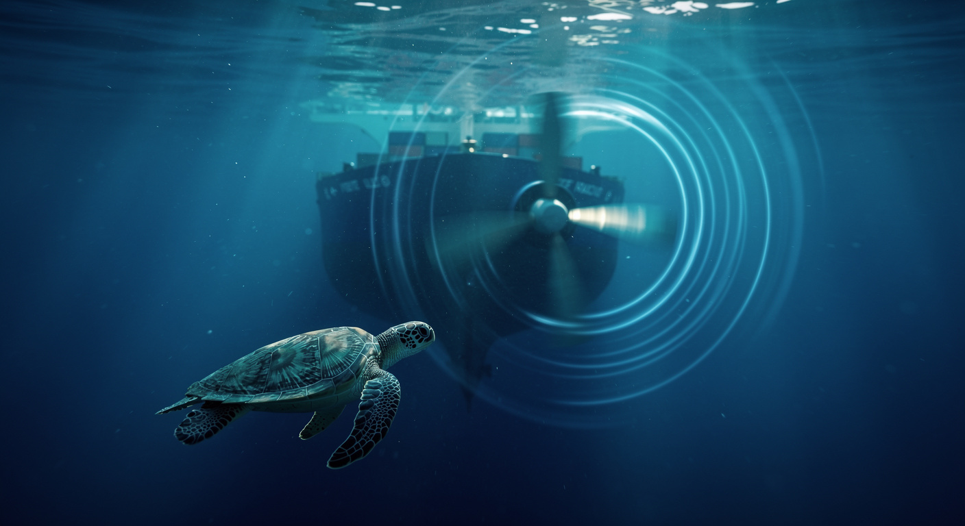 Pour une tortue évoluant dans une eau trouble, un fond sonore plus bruyant peut brouiller les indices provenant du ressac, des proies ou des prédateurs. Même un cargo lointain peut ajouter un son constant dans l’habitat, car cette bande de fréquences chevauche celle de la tortue de Kemp. Lorsque de nombreux navires partagent une même route, leur bruit combiné de basse fréquence peut élever le niveau sonore ambiant pendant de longues périodes.