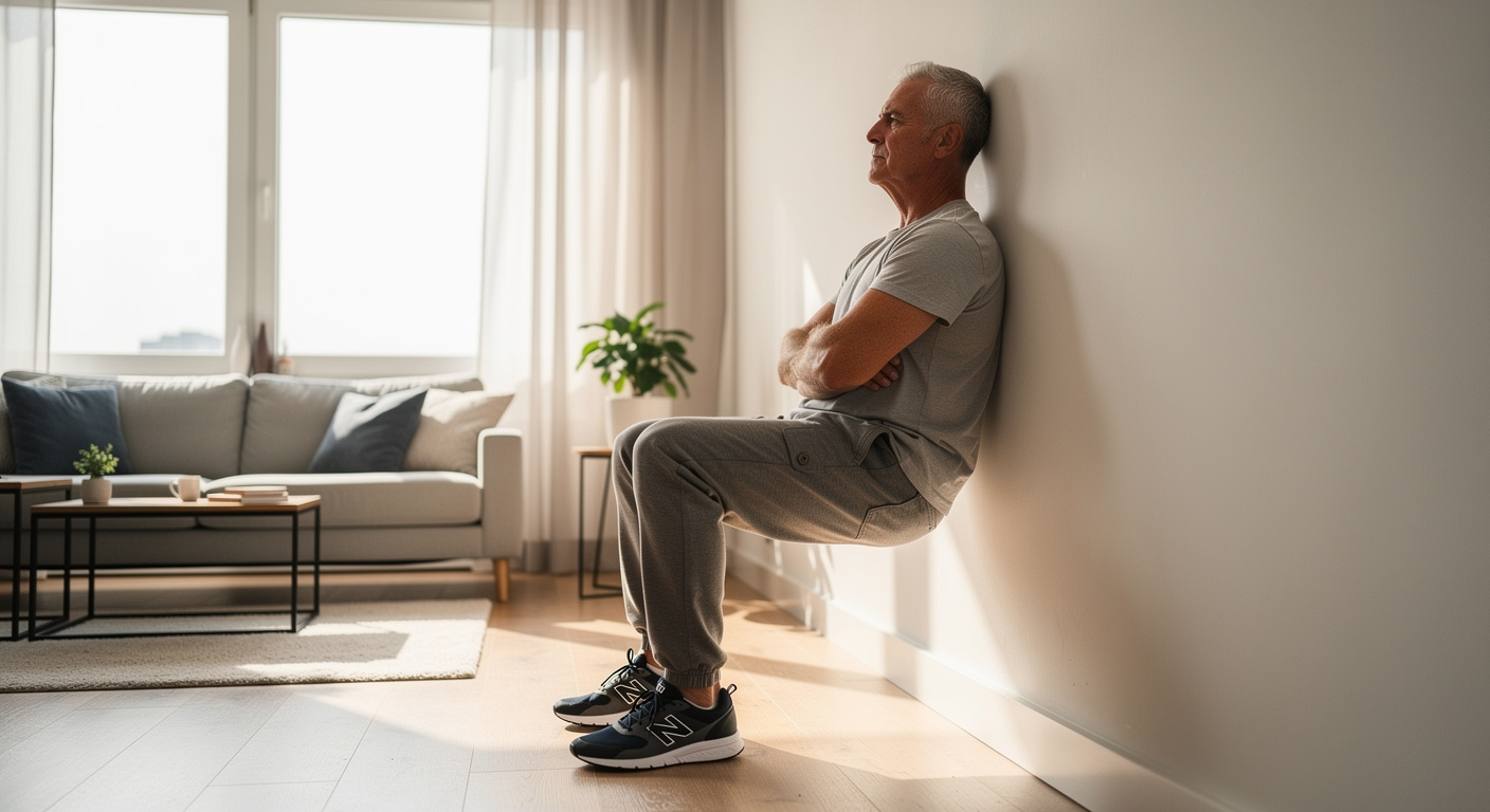 Pour tonifier la ceinture abdominale sans risque, l’exercice de la « chaise contre un mur » est une solution idéale validée par les professionnels de santé. Cet exercice isométrique consiste à s’adosser à un mur et à fléchir les jambes comme si l’on s’asseyait sur une chaise invisible.