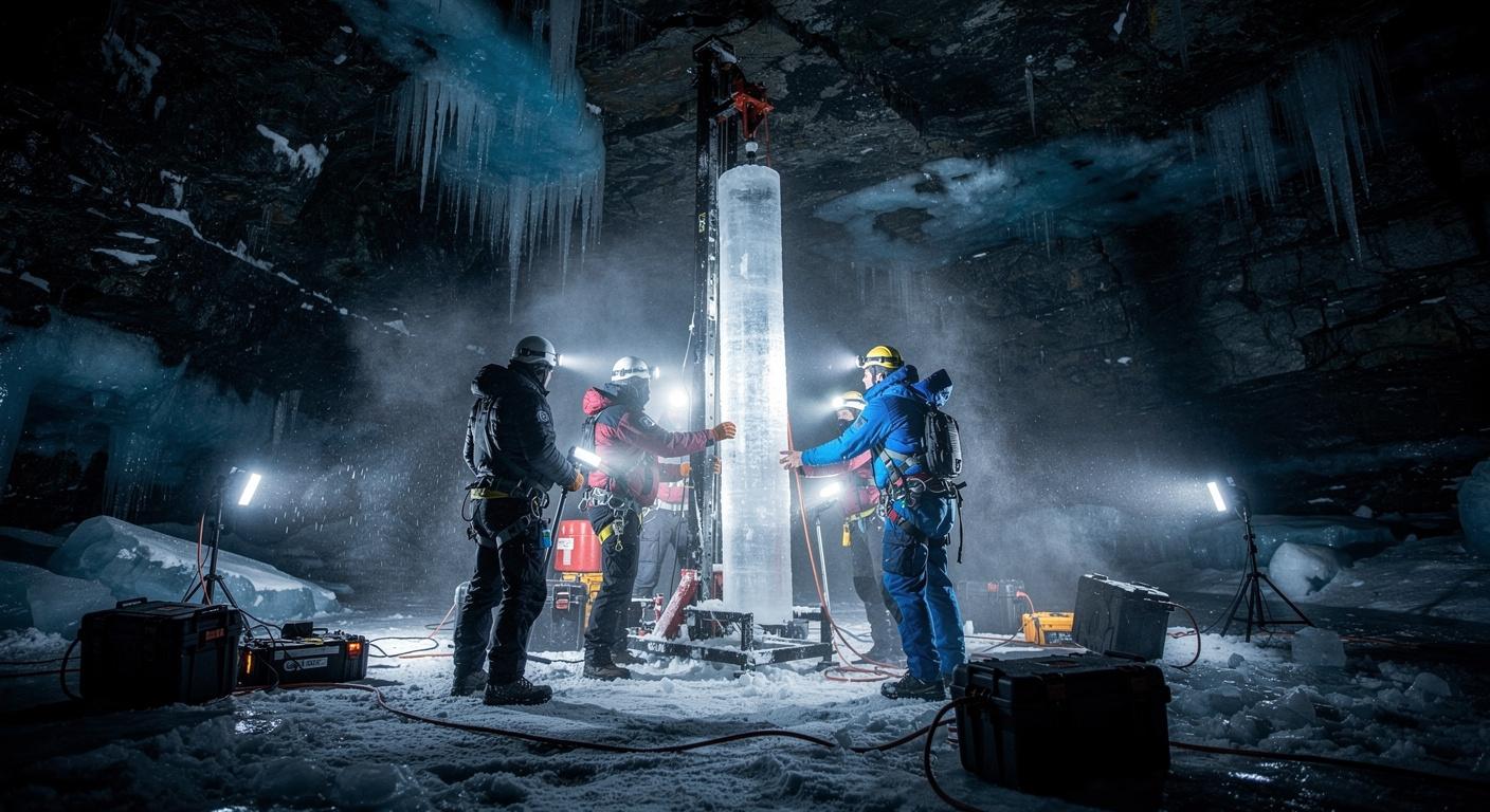 Pour mener à bien cette étude, l’équipe a dû extraire la matière première directement sur le terrain. Ils ont foré une carotte de glace de 25 mètres de long dans une zone de la grotte connue sous le nom de « Great Hall » (la Grande Salle). Ce prélèvement représente une chronologie géologique s’étendant sur 13 000 ans, offrant ainsi un véritable voyage dans le temps pour les microbiologistes.