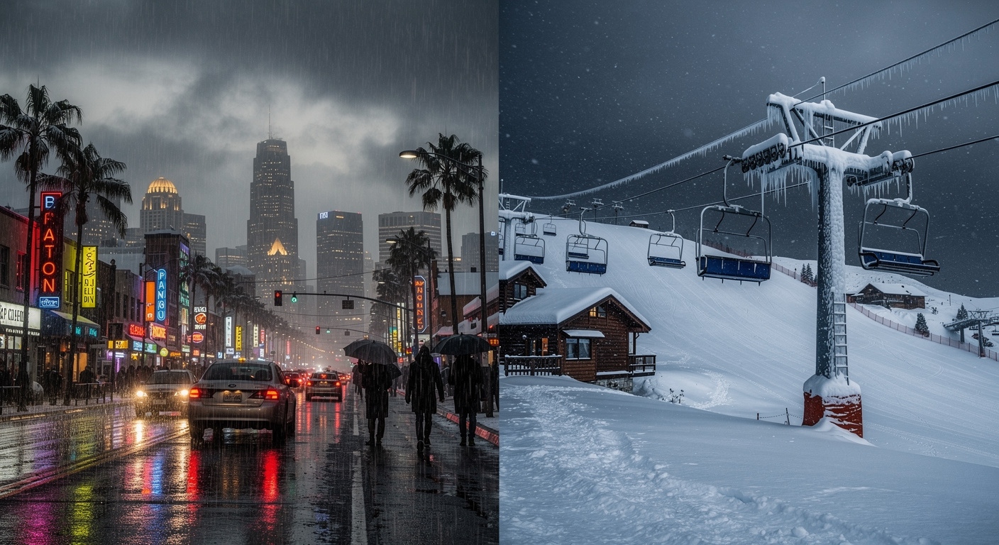 Cet accident s’inscrit dans un épisode météorologique particulièrement virulent qui touche la Californie depuis dimanche. Une tempête frappe l’État de plein fouet, provoquant des phénomènes intenses et variés selon les zones géographiques. Au sud, Los Angeles a subi de fortes pluies, tandis que les montagnes du nord de l’État ont enregistré d’importantes chutes de neige.