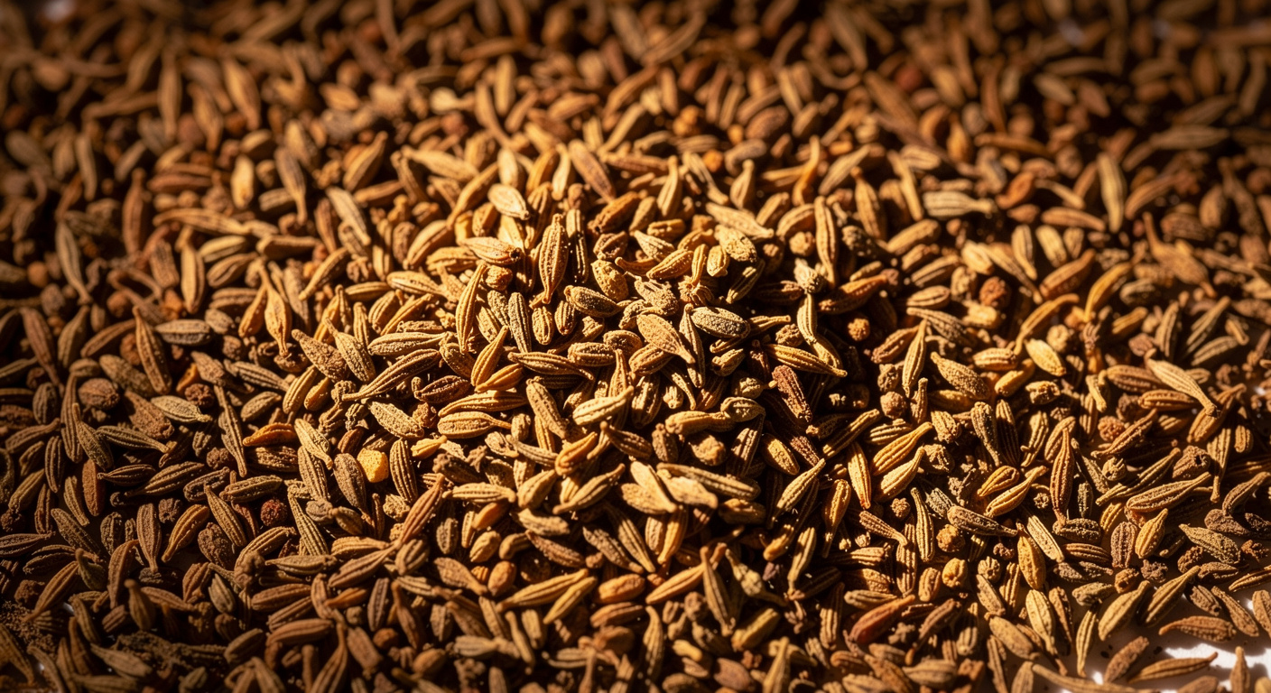 Les épices jouent un rôle non négligeable dans l’apport en minéraux, et les graines de cumin se distinguent particulièrement dans ce classement. Elles figurent parmi les ingrédients les plus riches en fer recensés par la table Ciqual.