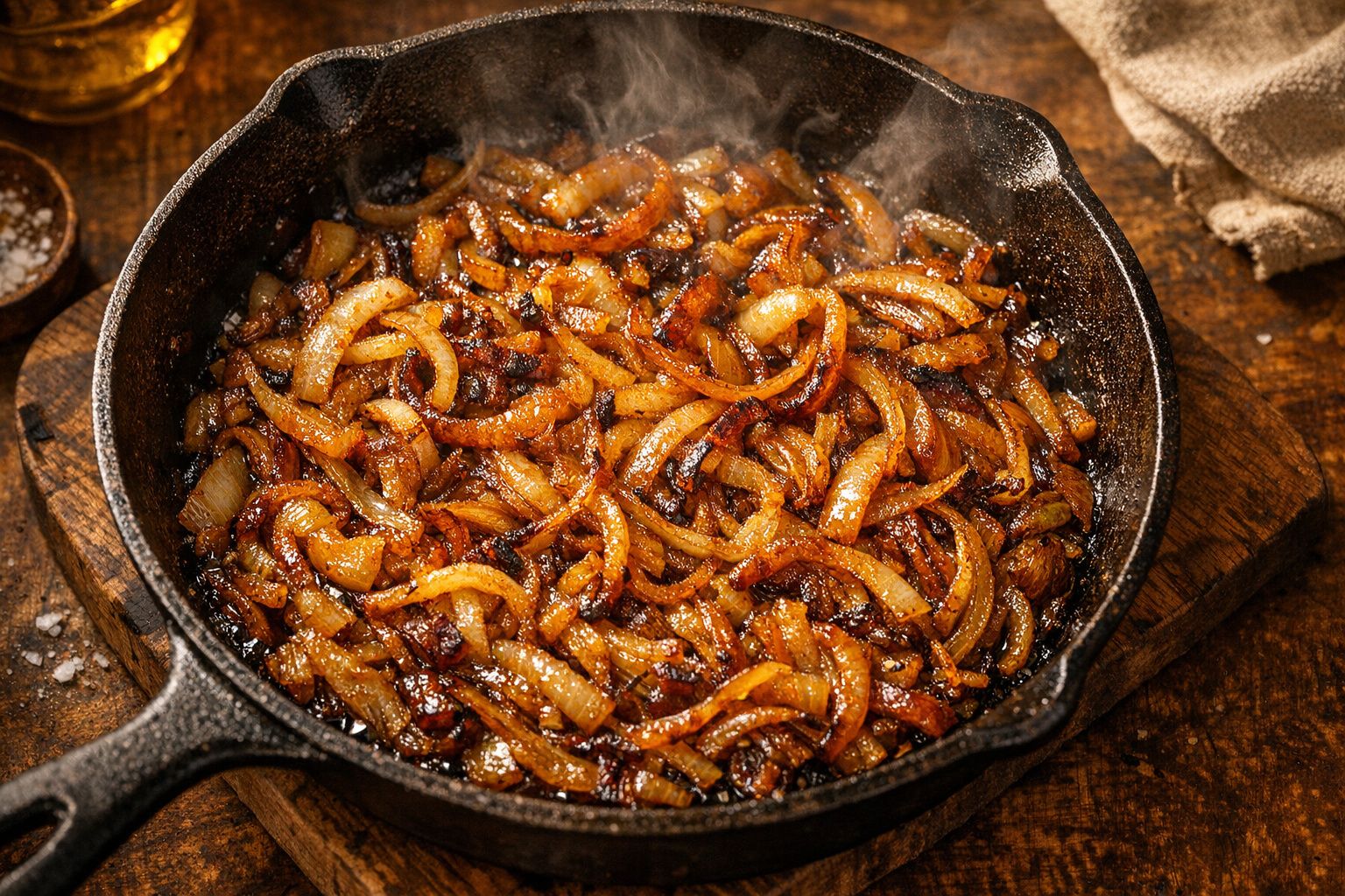 Attendre que les oignons ramollissent, se décomposent et libèrent leur sucre est souvent un travail de longue haleine, mais le bicarbonate de soude peut réduire ce temps de cuisson de moitié. Tout comme avec la viande, le bicarbonate augmente le pH des oignons, les rendant plus alcalins. Cela accélère la réaction de Maillard, une série de réactions chimiques qui se produisent lorsque les acides aminés et les sucres réducteurs sont chauffés, encourageant ainsi un brunissement plus rapide.