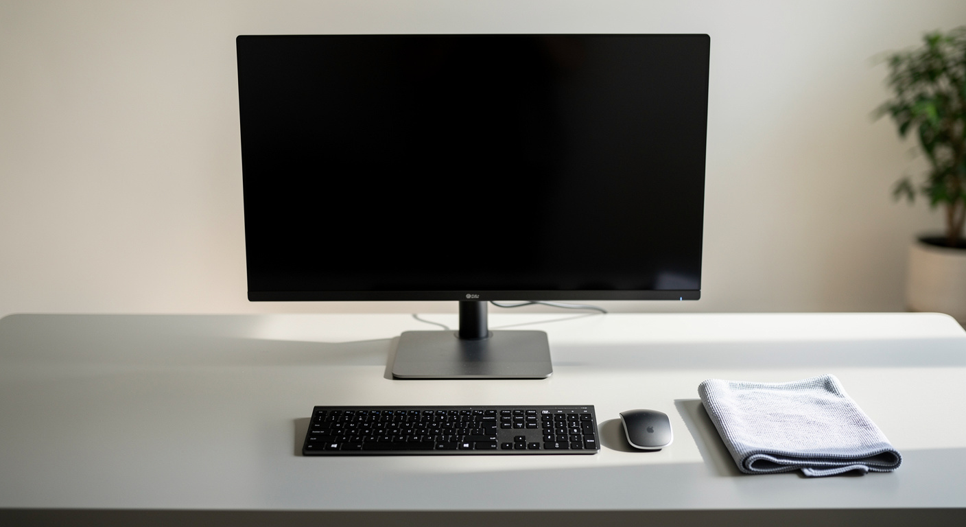 Avant toute chose, pensez à éteindre l’écran. Cette simple précaution a un double avantage. D’une part, un écran noir permet de voir bien plus facilement les taches et la saleté qui s’y sont accumulées. D’autre part, cela élimine la charge statique qui attire et retient la poussière. L’écran éteint, chaque passage de votre chiffon sera plus efficace.