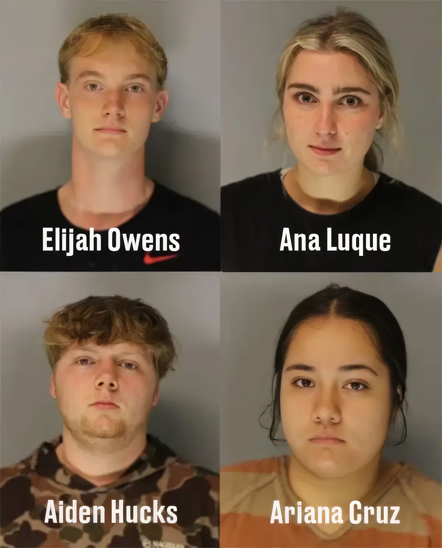 Les quatre autres adolescents, tous âgés de 18 ans, ont également été arrêtés. Elijah Tate Owens, Aiden Hucks, Ana Katherine Luque et Ariana Cruz sont poursuivis pour intrusion criminelle et abandon de détritus. Une collecte de fonds via GoFundMe a été mise en place pour soutenir la famille Hughes.