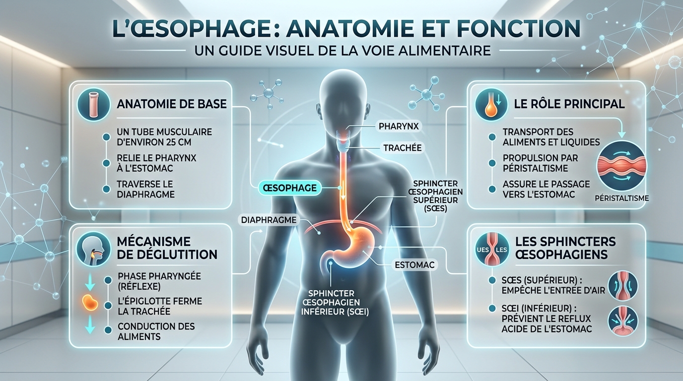 Cette douleur peut être ressentie comme une pression, une brûlure ou une crampe derrière le sternum. Elle diffère de la douleur cardiaque classique et est directement liée au passage de la nourriture.