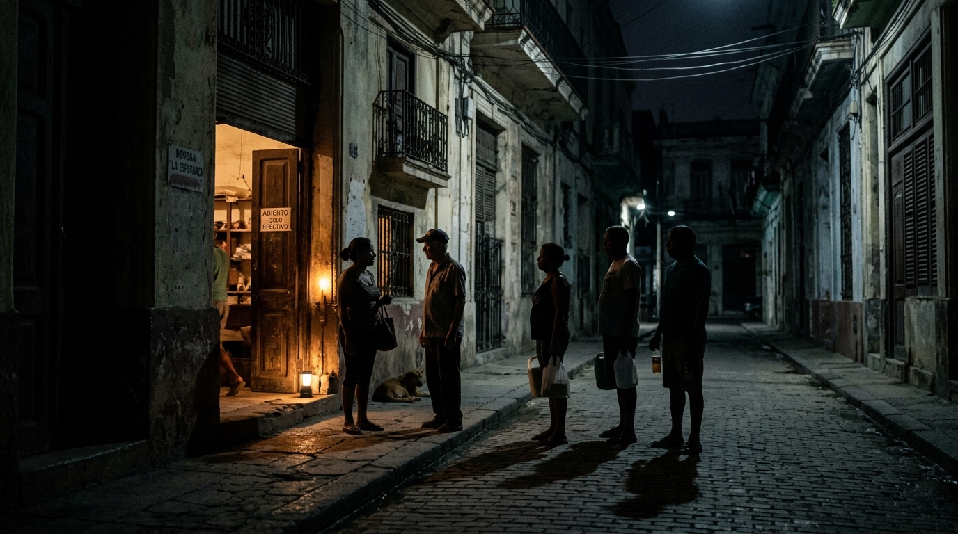 Le quotidien des habitants est rythmé par des pénuries, une frustration croissante et des coupures d’électricité. La crise énergétique de l’île a été considérablement aggravée par la réduction des livraisons de pétrole, liée aux politiques de l’administration Trump. L’effondrement économique du pays subit la pression extérieure du blocus imposé par cette même administration, combinée à diverses inefficacités internes.