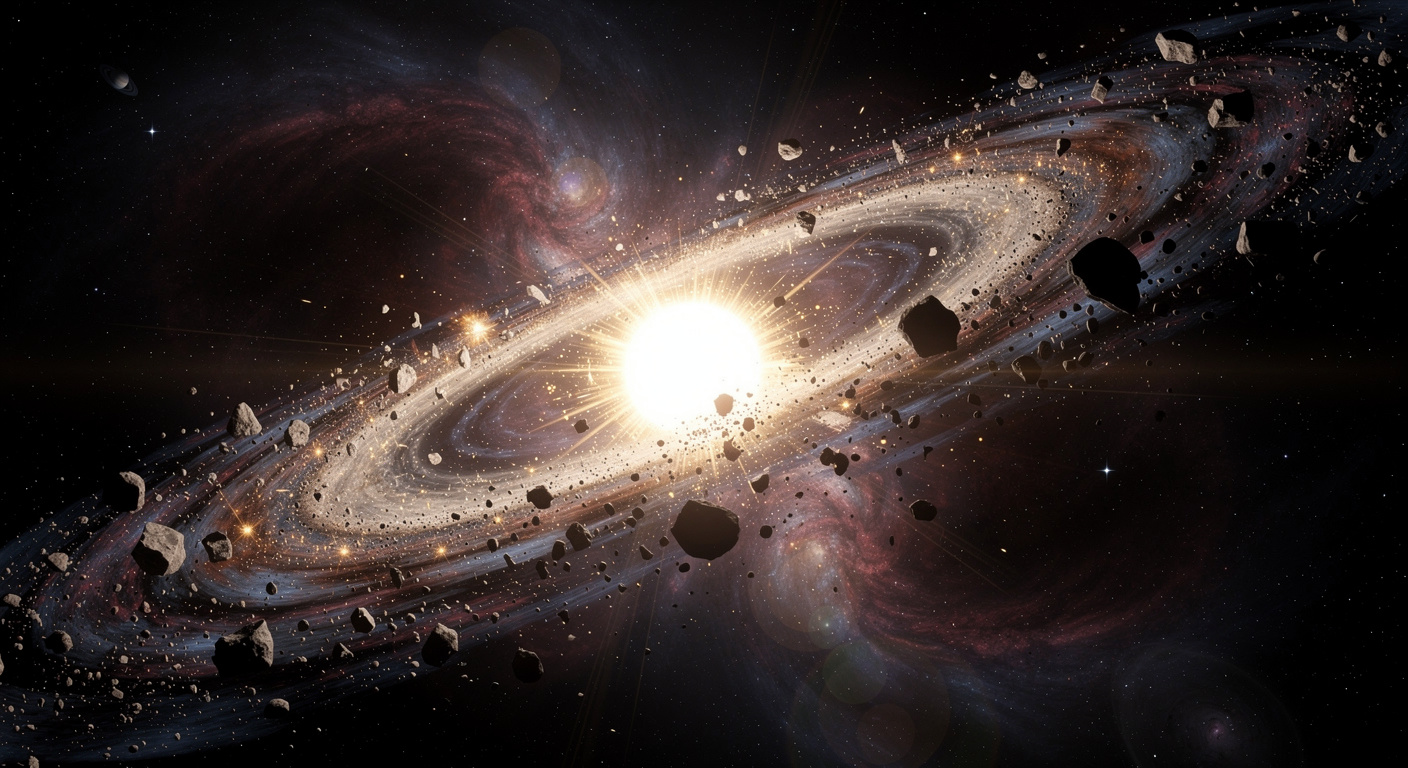 Selon ce modèle, la collision cataclysmique originelle n’aurait pas aggloméré la totalité de la matière. Une partie des composants stellaires aurait été laissée sur place, formant un nuage de débris autour du nouvel objet fusionné.