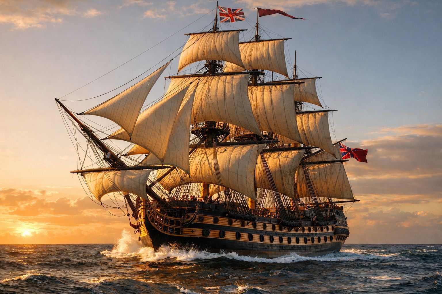 L’armement de bord comprenait un total de 50 canons, répartis de manière stratégique. Le National Park Service précise que le gaillard d’arrière accueillait six pièces de 6 livres, le pont supérieur abritait 22 canons de 9 livres, tandis que le pont-batterie supportait 22 canons de 18 livres. L’équipage, composé de plus de 300 hommes, naviguait près de Cuba et de la Jamaïque afin de faire une démonstration de force face aux navires espagnols.