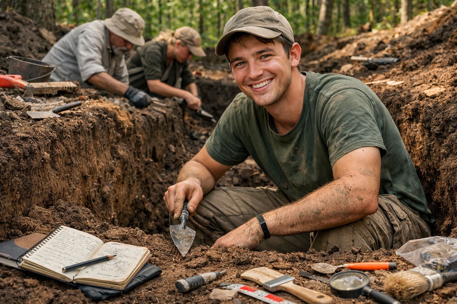 George Bird, un étudiant de 24 ans, a commencé à examiner cet emplacement précis avec une attention nouvelle. Le jeune homme soupçonnait que cet imposant bloc de pierre n’était pas le seul vestige de la zone. Il pressentait que le sol forestier dissimulait d’autres éléments d’un passé oublié.