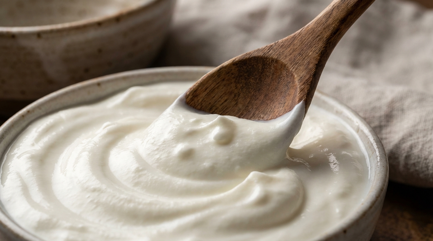 La structure de la recette s’appuie en premier lieu sur une base laitière protéinée. Les recommandations s’orientent vers l’utilisation d’une portion de skyr ou d’un yaourt nature, deux produits reconnus pour leur richesse commune en protéines et en calcium.