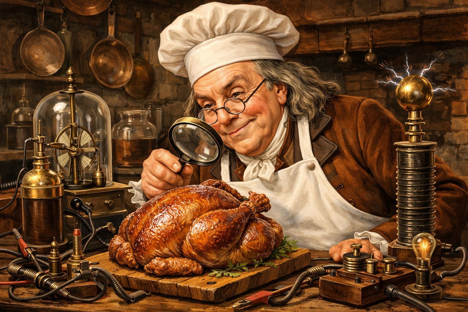 Cette fusion entre l’hospitalité et la physique a naturellement conduit à de nouvelles expérimentations culinaires. Le scientifique avait acquis la conviction intime que la viande de dinde offrait une qualité gustative bien supérieure si l’animal était électrocuté à mort, plutôt que de subir une décapitation traditionnelle.