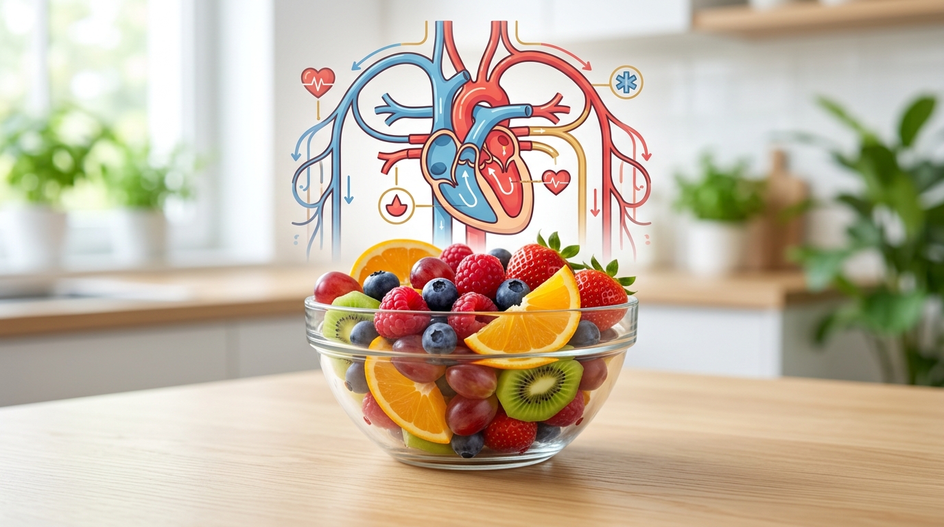 Riches en fibres, potassium, folate, antioxydants et composés végétaux bioactifs, les fruits agissent en synergie pour réduire le cholestérol, abaisser la pression artérielle, diminuer l’inflammation et l’agrégation plaquettaire, et améliorer les fonctions vasculaires et immunitaires. Retirer les fruits de son alimentation ne crée pas seulement un vide nutritionnel ; cela supprime une couche de protection active pour le cœur. Une analyse à grande échelle, compilant plusieurs études de cohorte, a conclu qu’une consommation d’environ cinq portions de fruits et légumes par jour (environ deux de fruits et trois de légumes) était associée au plus faible risque de mortalité, avec peu de bénéfices supplémentaires au-delà de ce seuil.