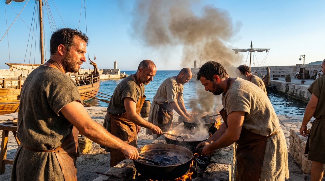 Au fil du temps, divers matériaux ont été mobilisés pour imperméabiliser les coques : des résines, du bitume, des goudrons végétaux purs ou mélangés à de la cire d’abeille, des graisses, ainsi que des éléments inorganiques. Cette pratique aide à sceller les fissures dans la structure en bois des navires, offrant une couche de protection indispensable contre la corrosion, les vers et divers parasites. L’expansion de la construction navale entre le XIIIe et le XIXe siècle a entraîné la croissance de toute une industrie dédiée à la transformation des goudrons végétaux.