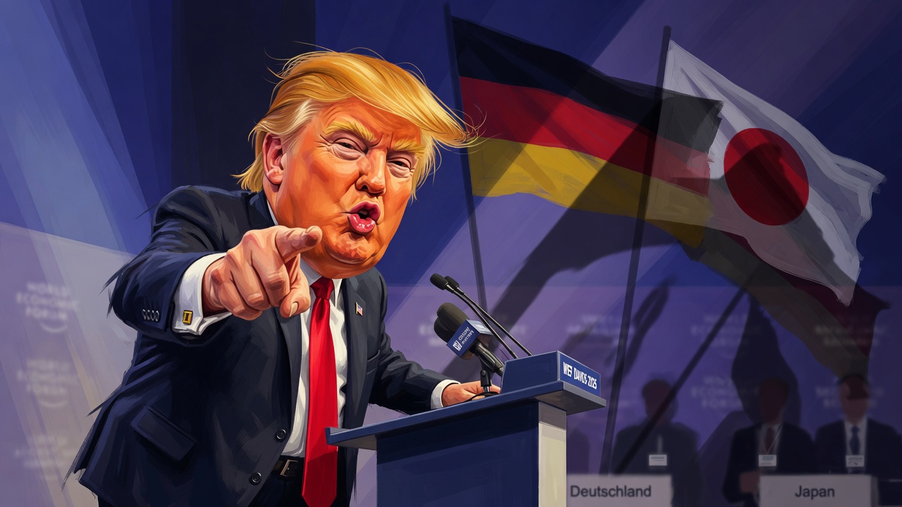Pour comprendre la plaisanterie du roi, il faut remonter au mois de janvier. Lors du sommet de Davos, Donald Trump avait alors lancé aux dirigeants européens, qu’il accuse de ne pas assez contribuer à leur propre défense depuis la Seconde Guerre mondiale, une phrase choc. Il avait affirmé que sans l’aide des États-Unis durant le conflit, « vous parleriez allemand et un peu japonais ».