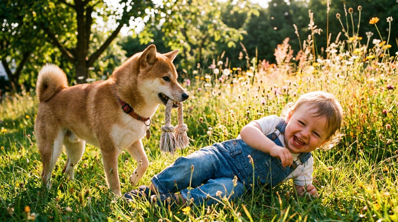 Le Shiba Inu est un chien très joueur, ce qui en fait un excellent partenaire pour les enfants. Il peut passer des heures à s’amuser avec eux sans jamais se lasser. Son caractère espiègle et malin trouve un écho parfait dans l’énergie des plus jeunes, faisant de lui un compagnon de jeu idéal.